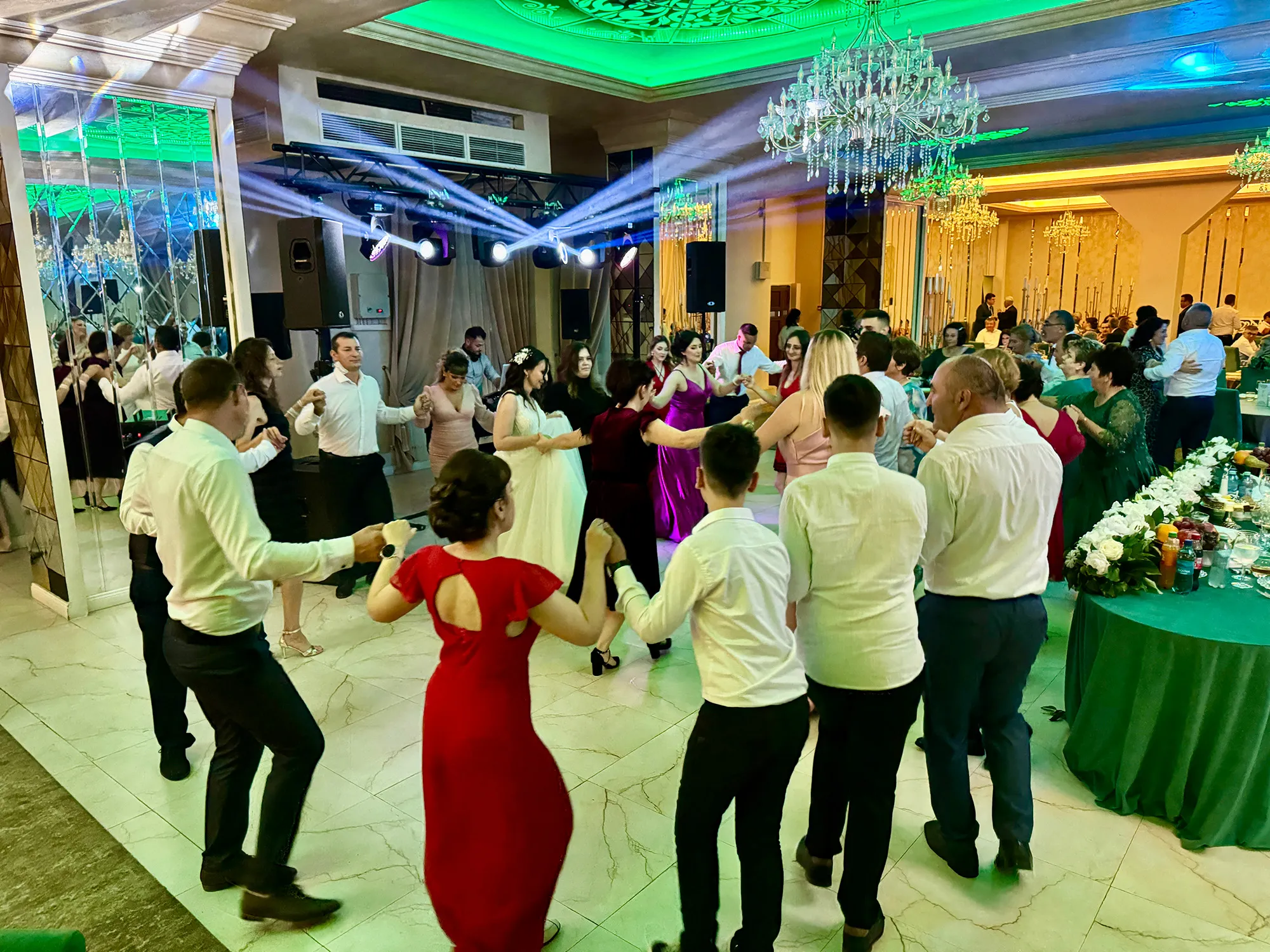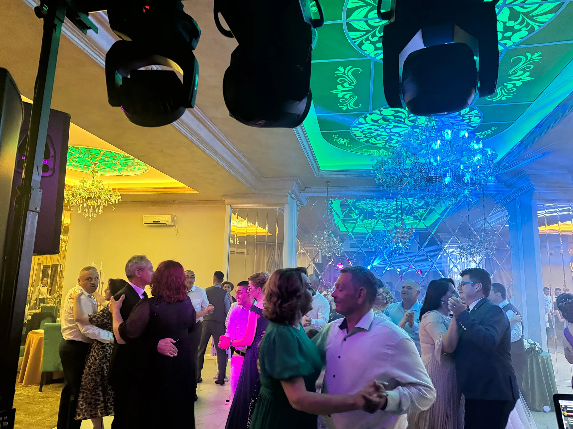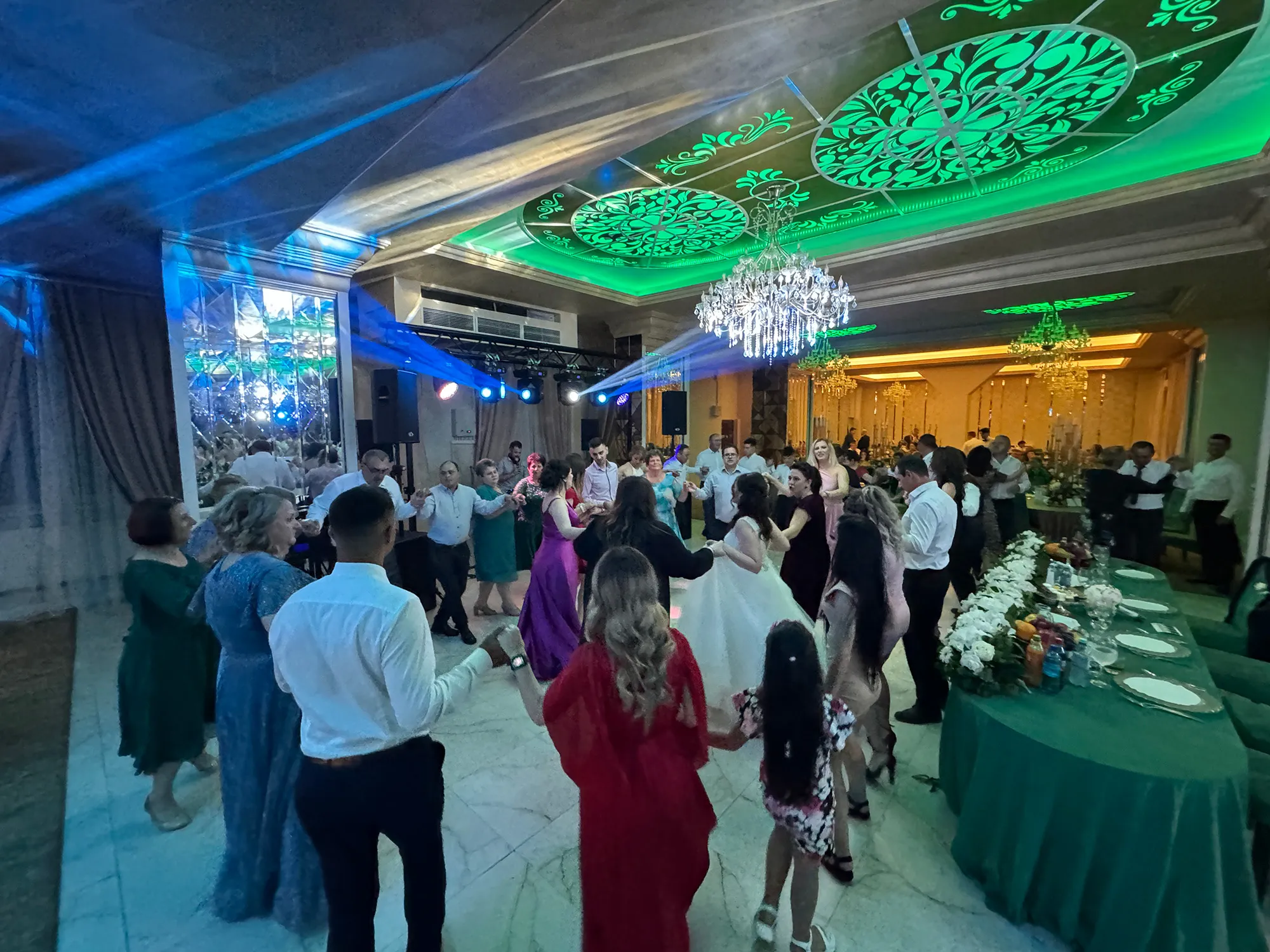Petrecerea de nuntă a Iuliei și a lui Bogdan a fost animată de muzică aleasă, sonorizare impecabilă și lumini spectaculoase, care au creat o atmosferă plină de energie și emoție. De la dansurile romantice până la momentele de distracție pe ring, fiecare clipă a prins viață prin ritmuri vibrante și efecte vizuale memorabile. Echipa Flaviu Studio a transformat seara într-o experiență unică, lăsând amintiri de neuitat pentru miri și invitați.